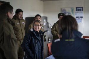 En compañía de la ministra de Obras Públicas, Jessica López; la gobernadora (s) de la Región de Magallanes y de la Antártica Chilena, Eugenia Mancilla; el delegado presidencial regional, José Ruiz; el delegado provincial, José Miguel Campos; y el alcalde de Timaukel, Luis Barría; el Jefe de Estado visitó la tenencia de Carabineros de Chile, donde compartió con la dotación, el paradero de buses, la Escuela Pampa Guanaco, la nueva multicancha, las obras de la futura plaza, la posta, y el centro recreacional de la comuna, oportunidad en la que se reunió con vecinas y vecinos.
